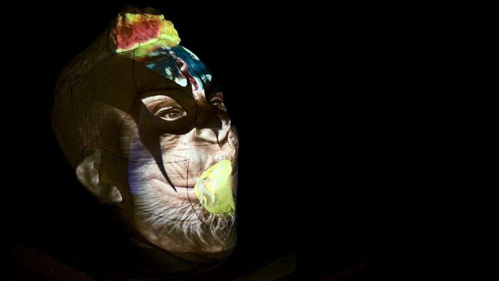 On a smaller scale, a 3D-fabricated sculpture of his face provided a challenging projection mapped surface as my Visuals module heads toward end-of-term assessment. Indulging a desire to integrate facial projection into future projects, this was the ideal static subject to try things out over a few hours of experimental studio time.