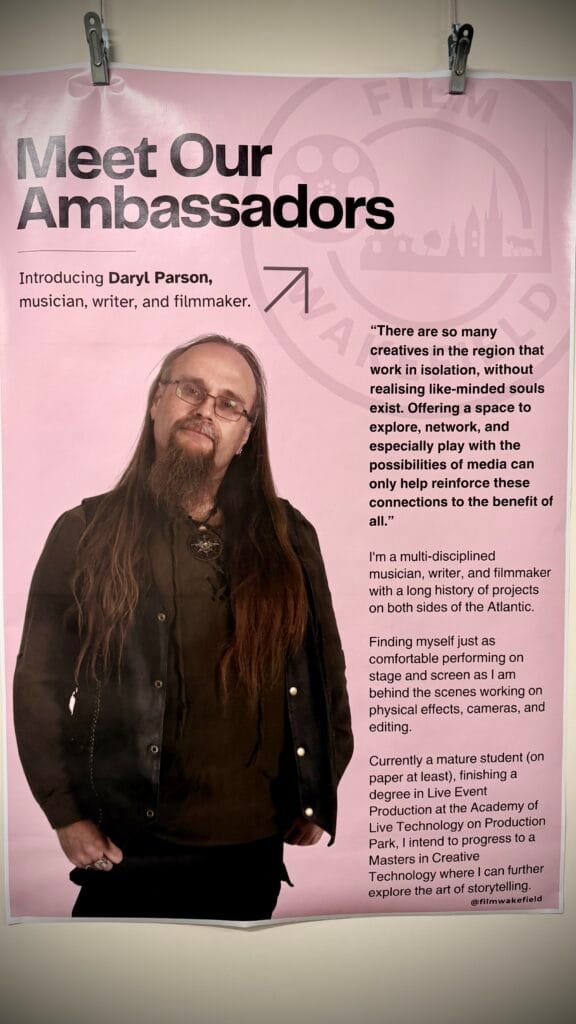 From here, I am pleased to announce my appointment as Ambassador for Film Wakefield, representing the district’s film industry on campus and beyond, and providing a platform from which I can give something back.